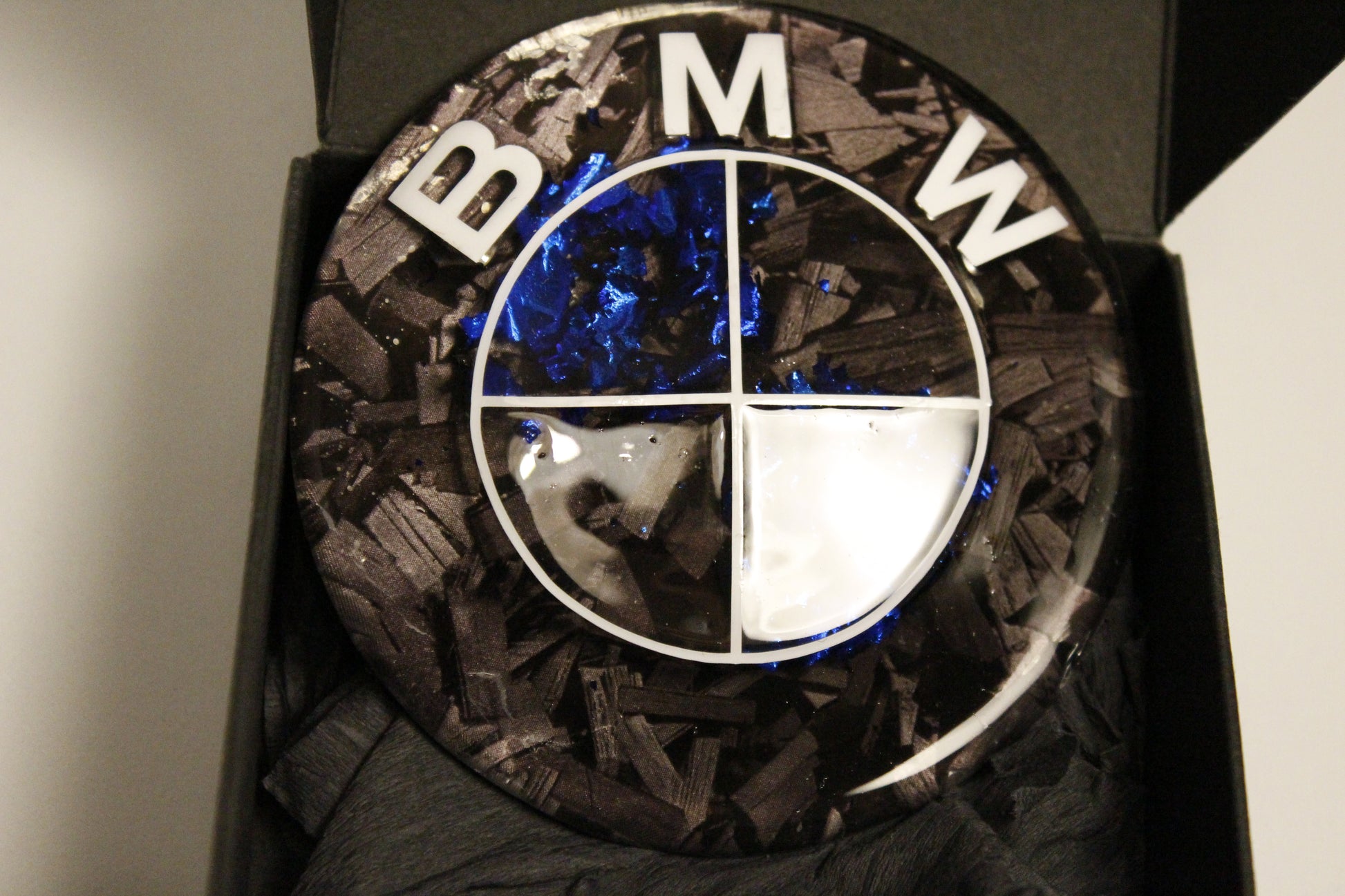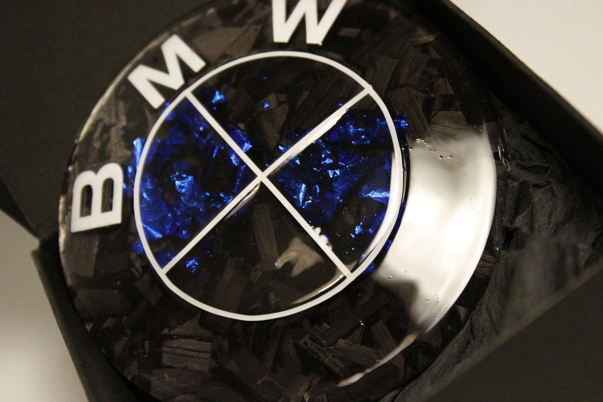 Pan de oro azul en el interior con un fondo de vinilo de fibra de carbono forjada, la combinación perfecta entre deportividad y exclusividad.